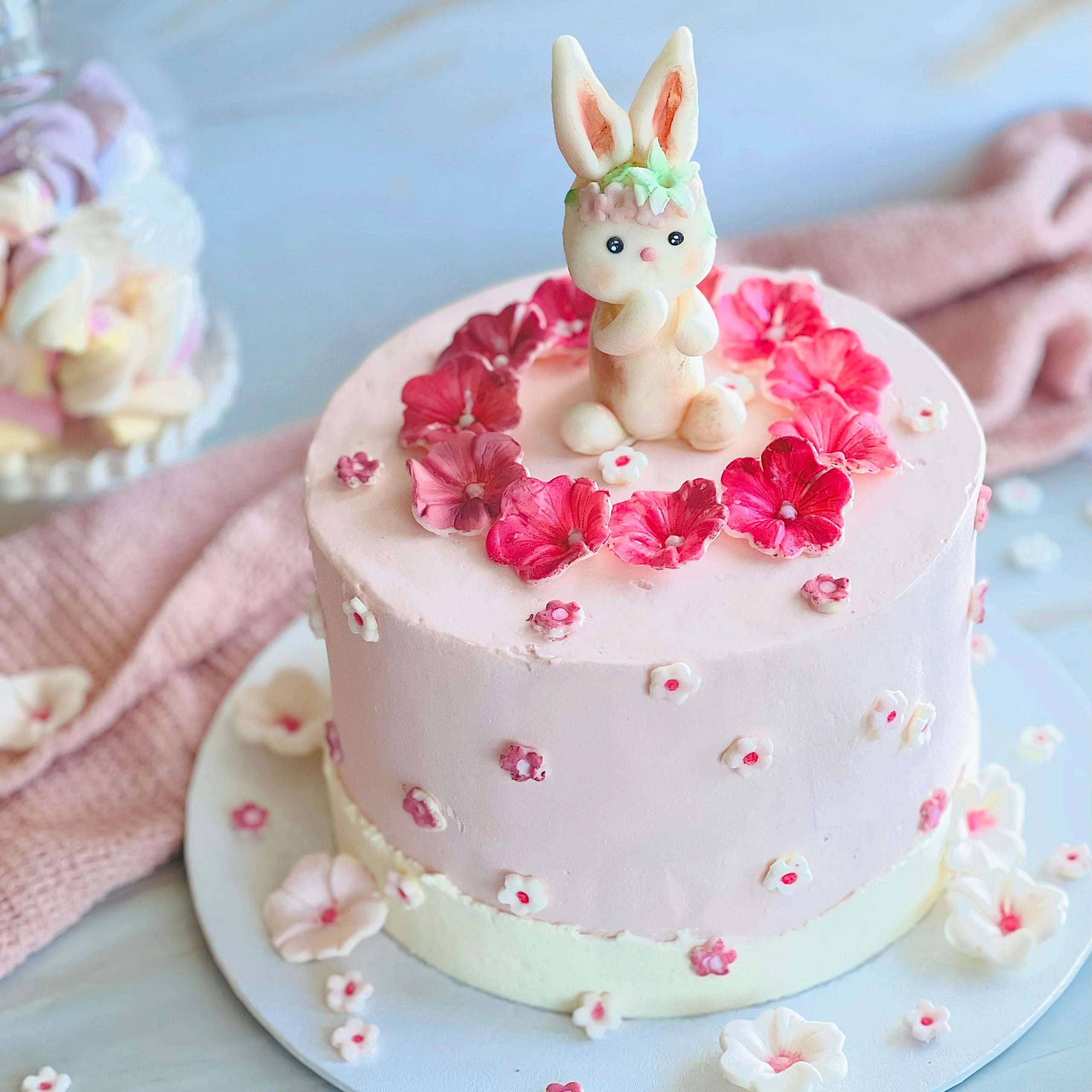Torte auf dem Cakeboard ankleben mit Ganache, Buttercreme.