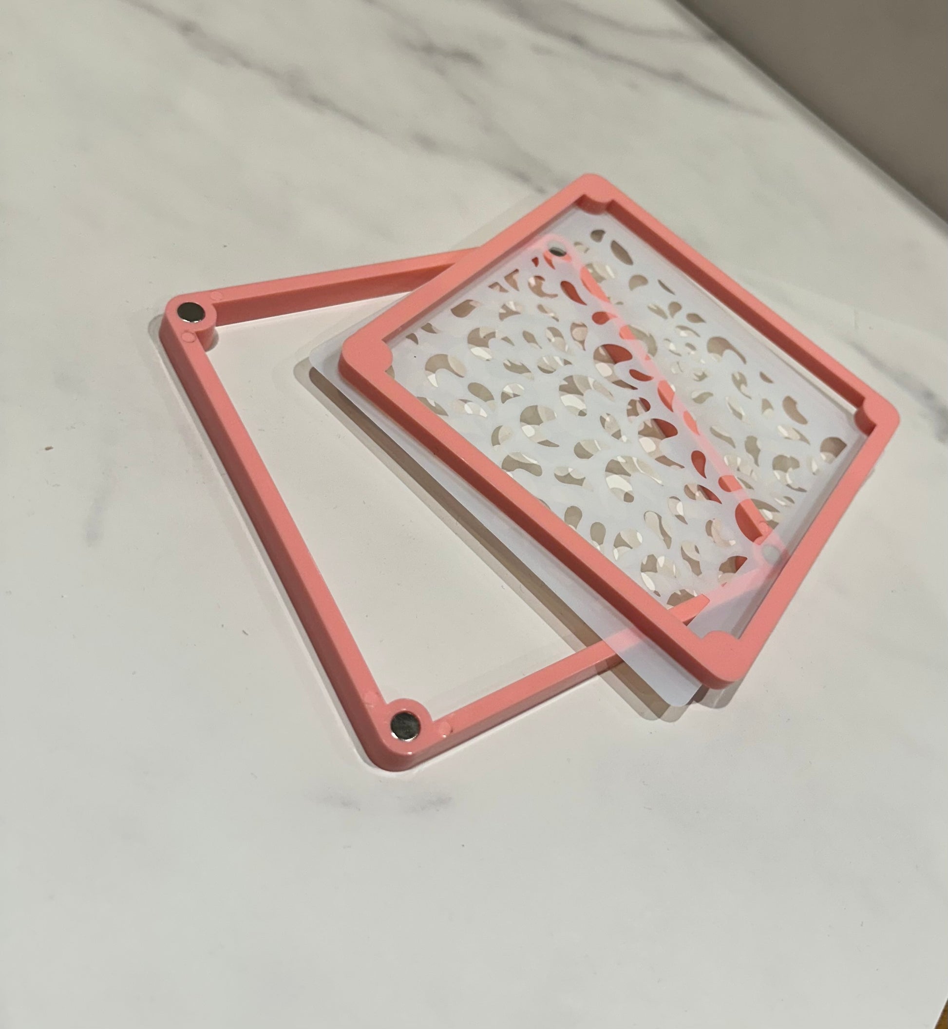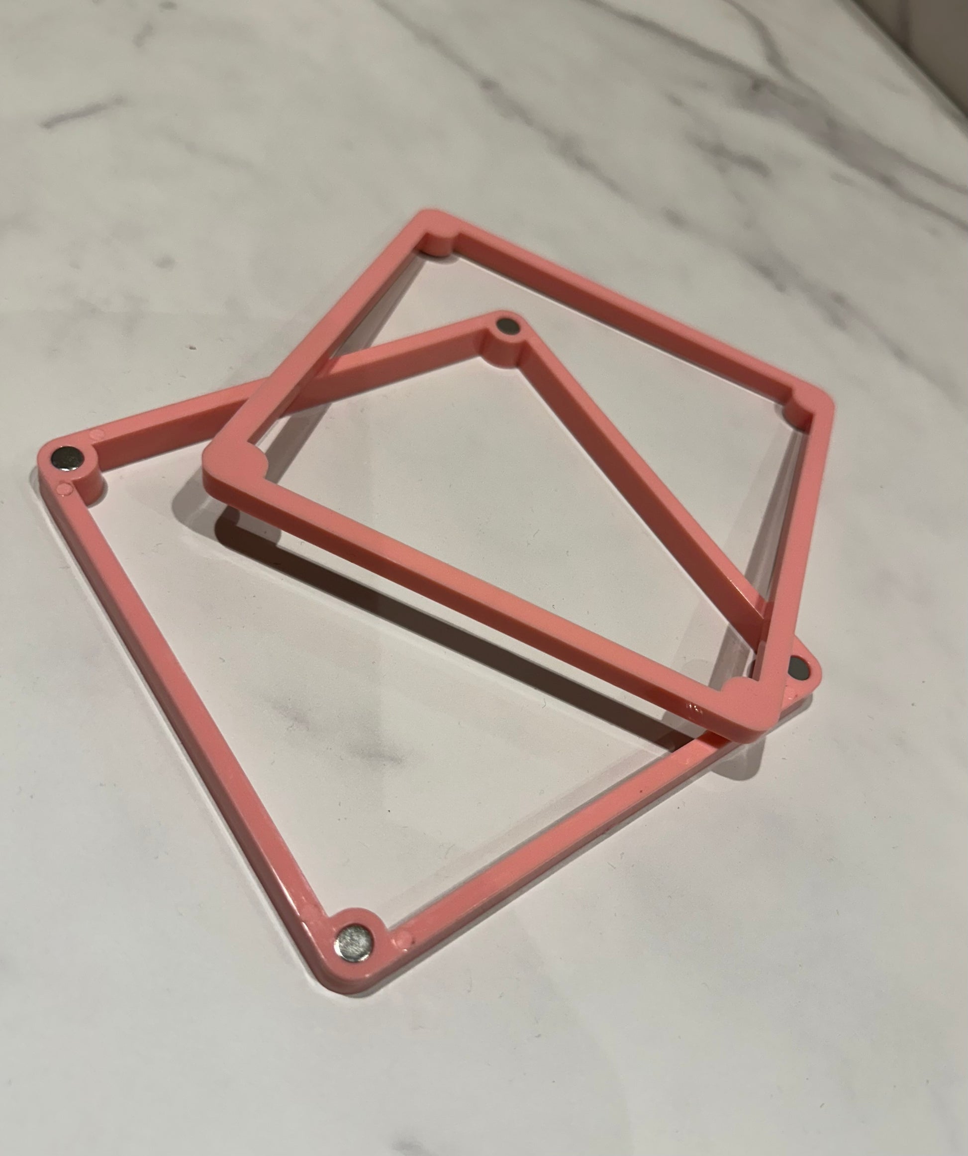 Hält deine Schablonen, damit du unbeschwert arbeiten kannst. Den Rahmen könnt ihr dafür verwenden, um die Schablone zu stabilisieren. Einfach die Schablone zwischen den Rahmen legen und diesen dann über den Cookie legen. Danach wie gewohnt mit einem Airbrush oder mit Icing weiterfahren. Keine Sorgen, beide Rahmen haben in der Innenseite Magnete, dadurch kann nichts verrutschen.